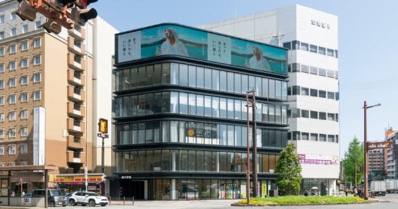 当薬局は戦前の昭和9年に法人化され、もうすぐ100年を迎えます。今と同じ水道町交差点角で本店が創業しました。その後、太平洋戦争の空襲、熊本大水害、熊本地震にも被災しました。平成26年に藤崎宮前支店、令和元年に本店が今のビルに建て換わり、令和2年に熊本駅前支店が開業しました。